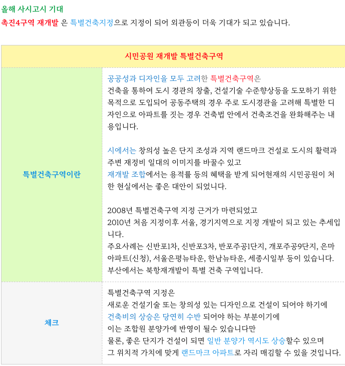 시민공원 주변 재개발의 특징 을 다시 한번 간략히 정리해 드립니다.