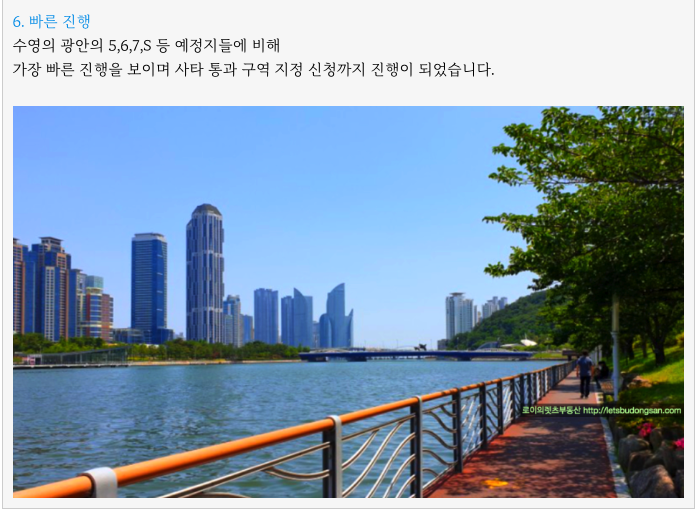 - 수영강변, 센텀생활권, 빠른진행