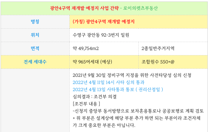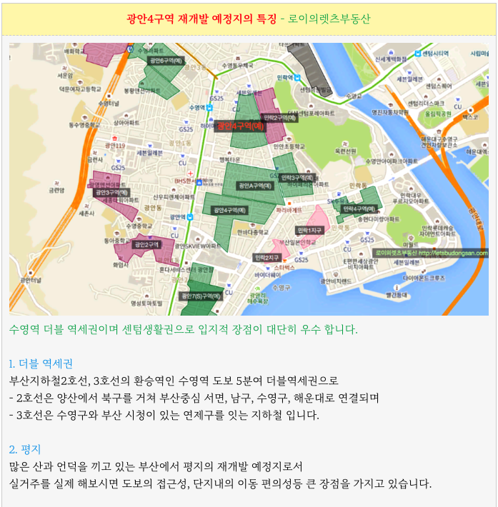 광안4구역 재개발 예정지의 간략한 특징을 다시 한번 정리 하였습니다.
