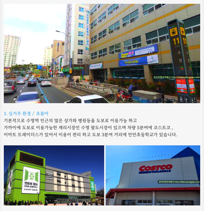 수영역 인근의 많은 상가와 병원과 재래시장인 팔도시장등을 도보로 이용가능 하고