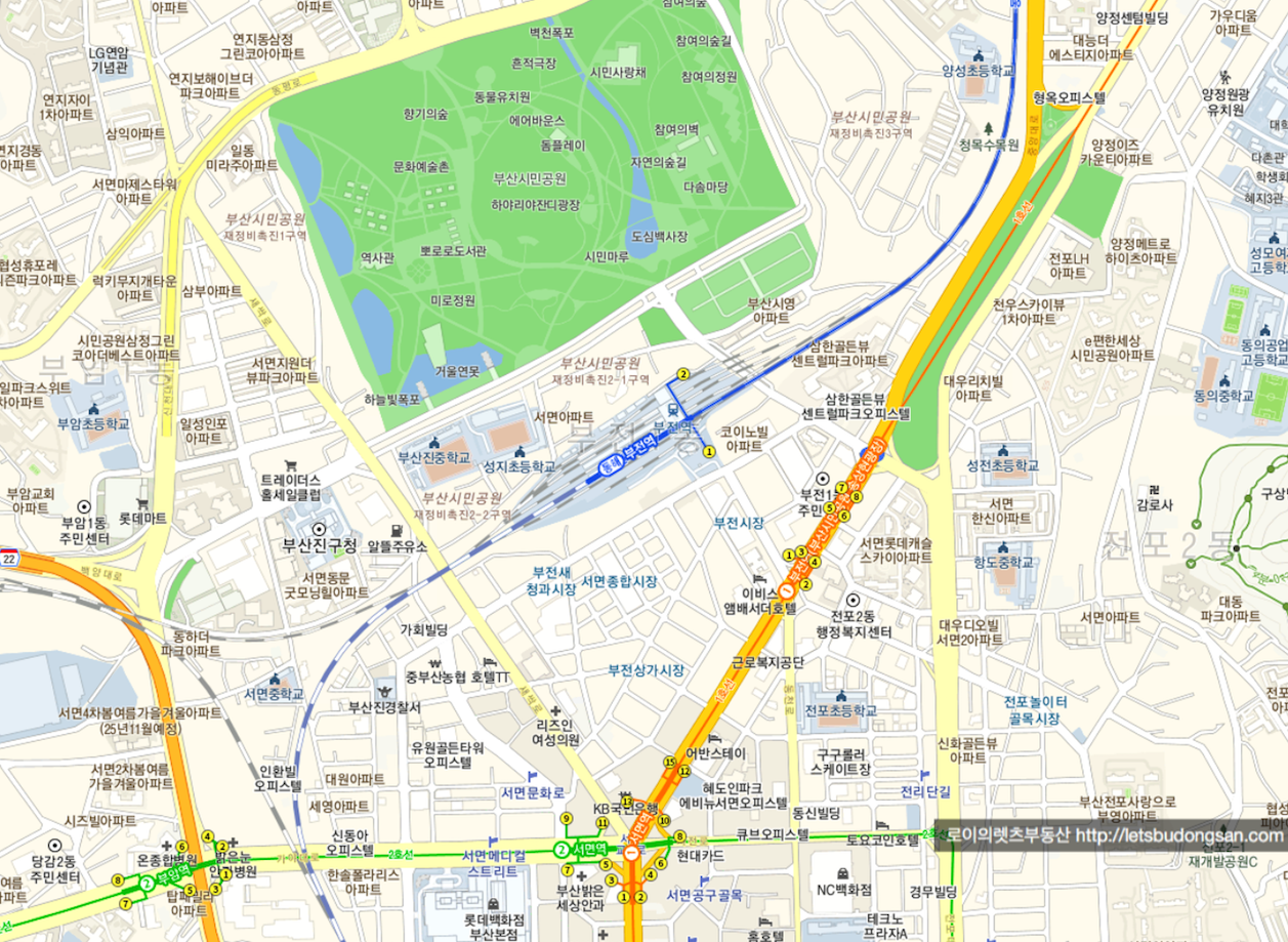부전역의 뒷편, 시민공원의 바로 앞쪽으로 위치하고 있는 구역으로