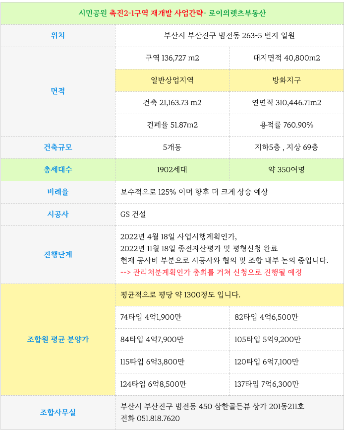 시민공원 촉진2-1구역 재개발에 대해 궁금하신점은 연락주시면 자세히 설명드리겠습니다.