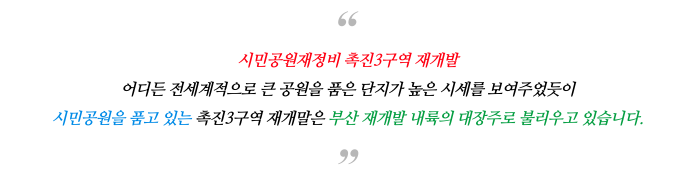 자타공인으로 부산의 중심 도심 부산 내륙의 재개발 대장주로 인정받고 있습니다.