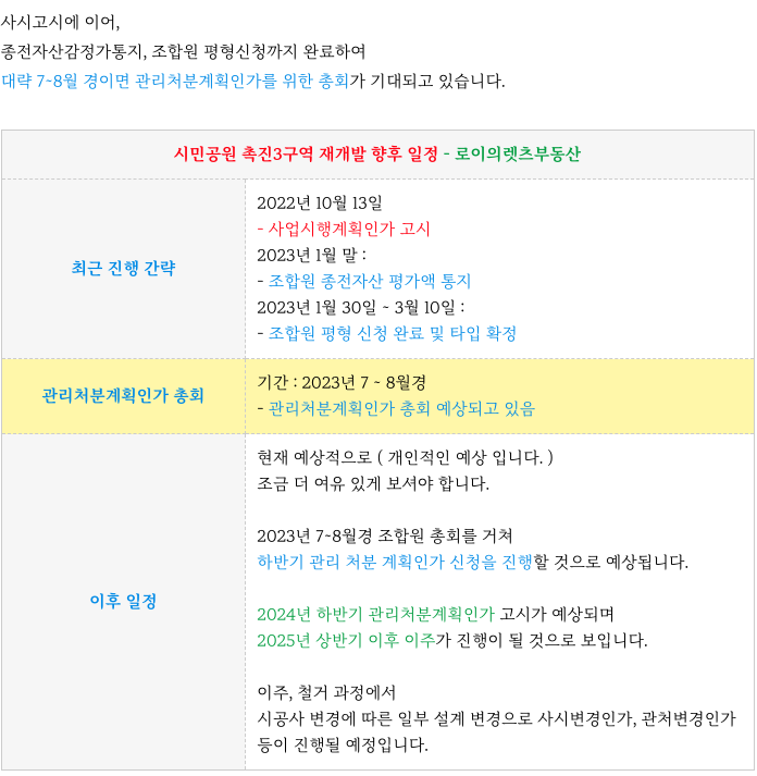 촉진3구역 재개발 총회 준비중 & 84C, 98C, 114A 매물
