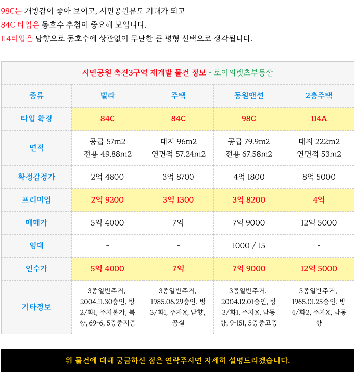 시민공원 촉진3구역 재개발 관처총회 준비중 & 84C, 98C, 114A 매물 소개해 드리겠습니다.