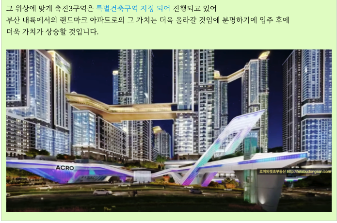 그 위치적 가치에 더하여 부산 내륙의 랜드마크 아파트로 자리매김할 수 있을 것입니다.