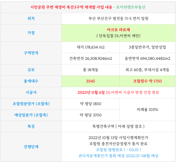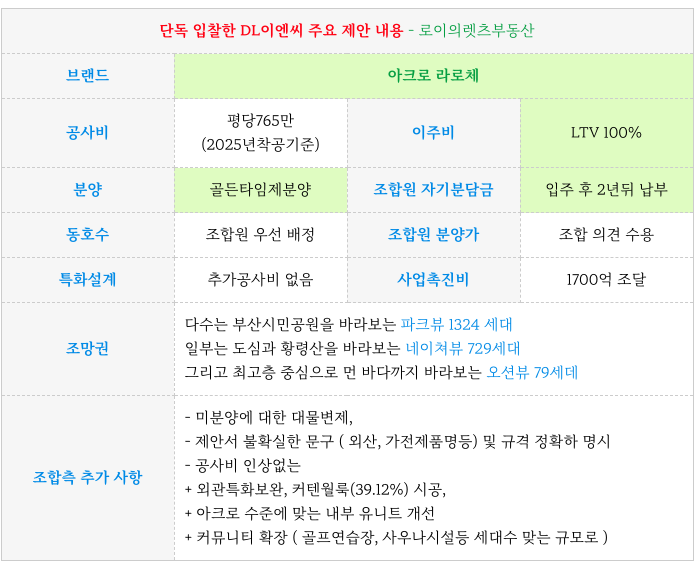 새로운 시공사로 선정된 DL이엔씨 제안 내용을 간략히 정리 드립니다.