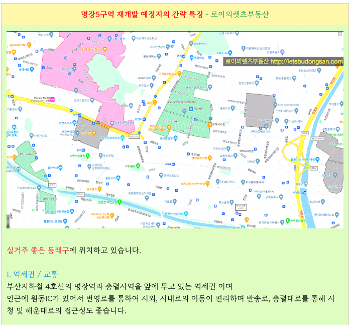 명장5구역, 안락1구역 재개발 예정지의 간략한 특징을 정리하여 드립니다.