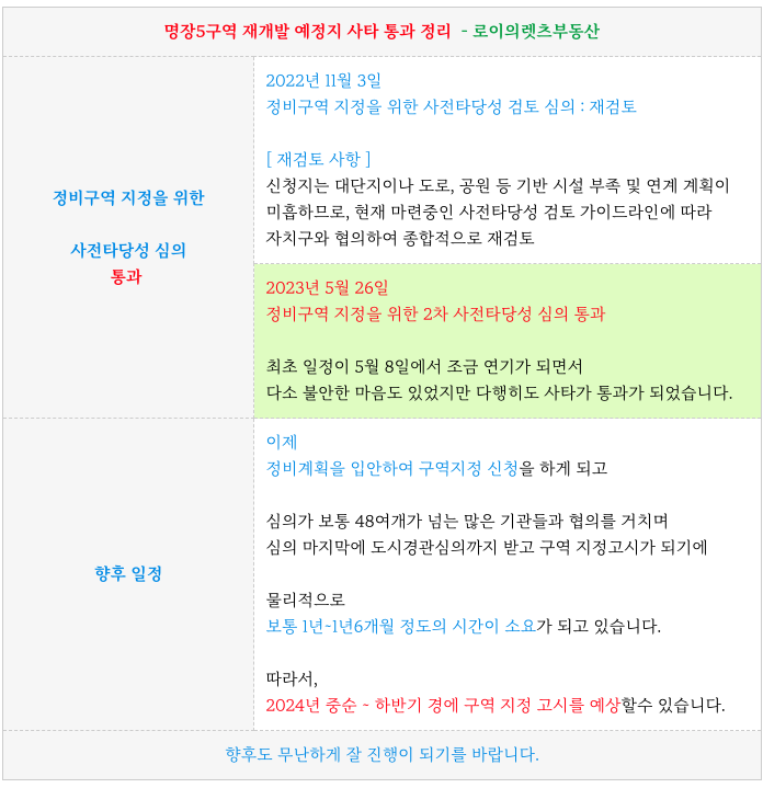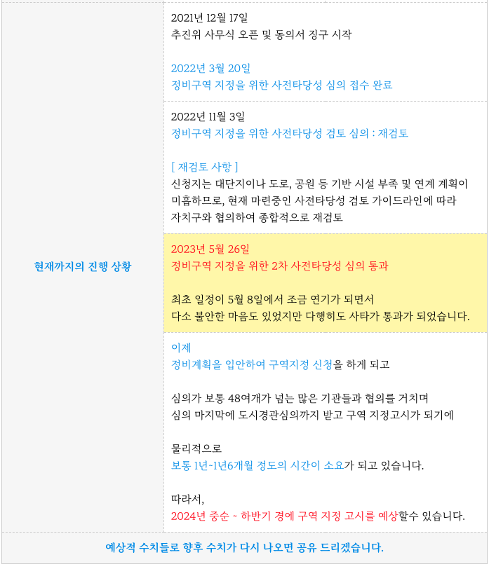 2차 정비구역 지정을 위한 사전타당성 심의에서 통과가 되었습니다.