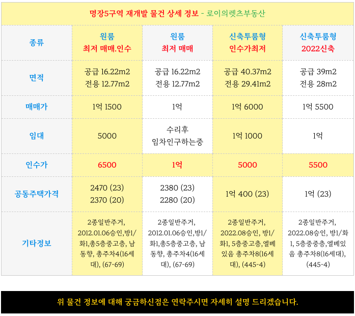 1) 명장5구역 재개발 인수가 작은 물건 정리