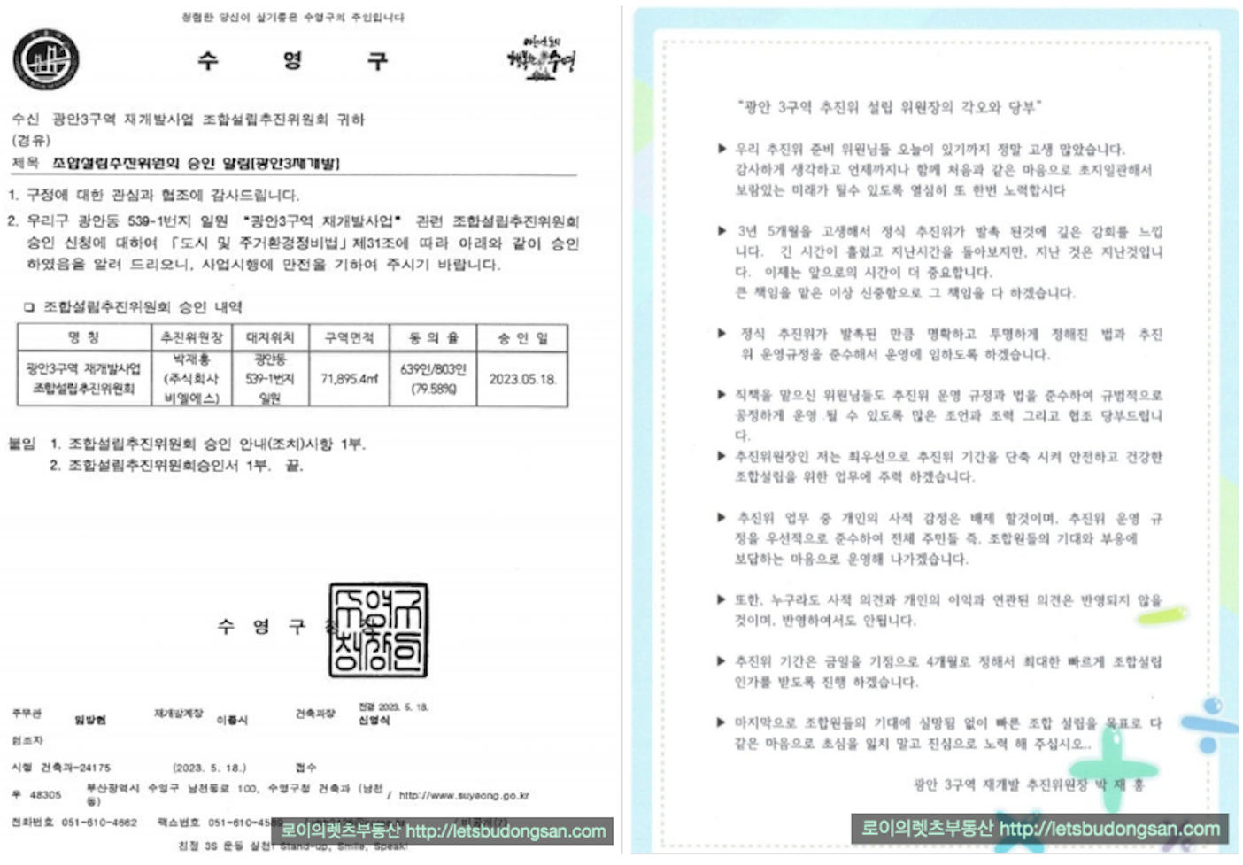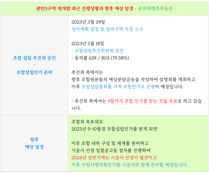 시세좋은 광안3구역 재개발 최근 진행정리와 1.55 인수 소액 매물등 소개 드리겠습니다.