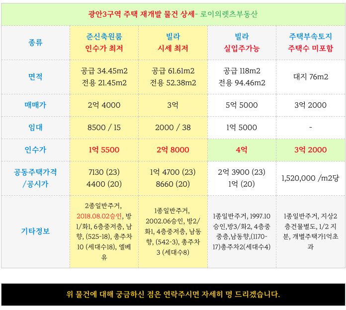 수영구 광안3구역 재개발 최저 1.55 인수 매물등 정보 소개해 드리겠습니다.
