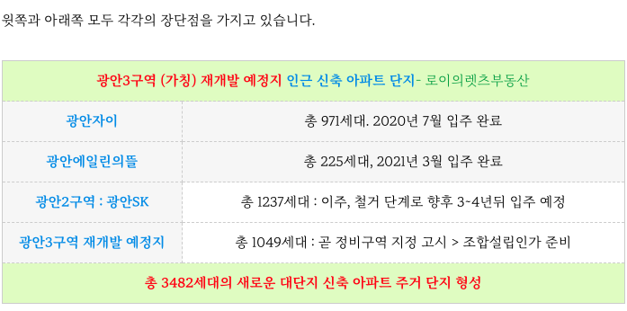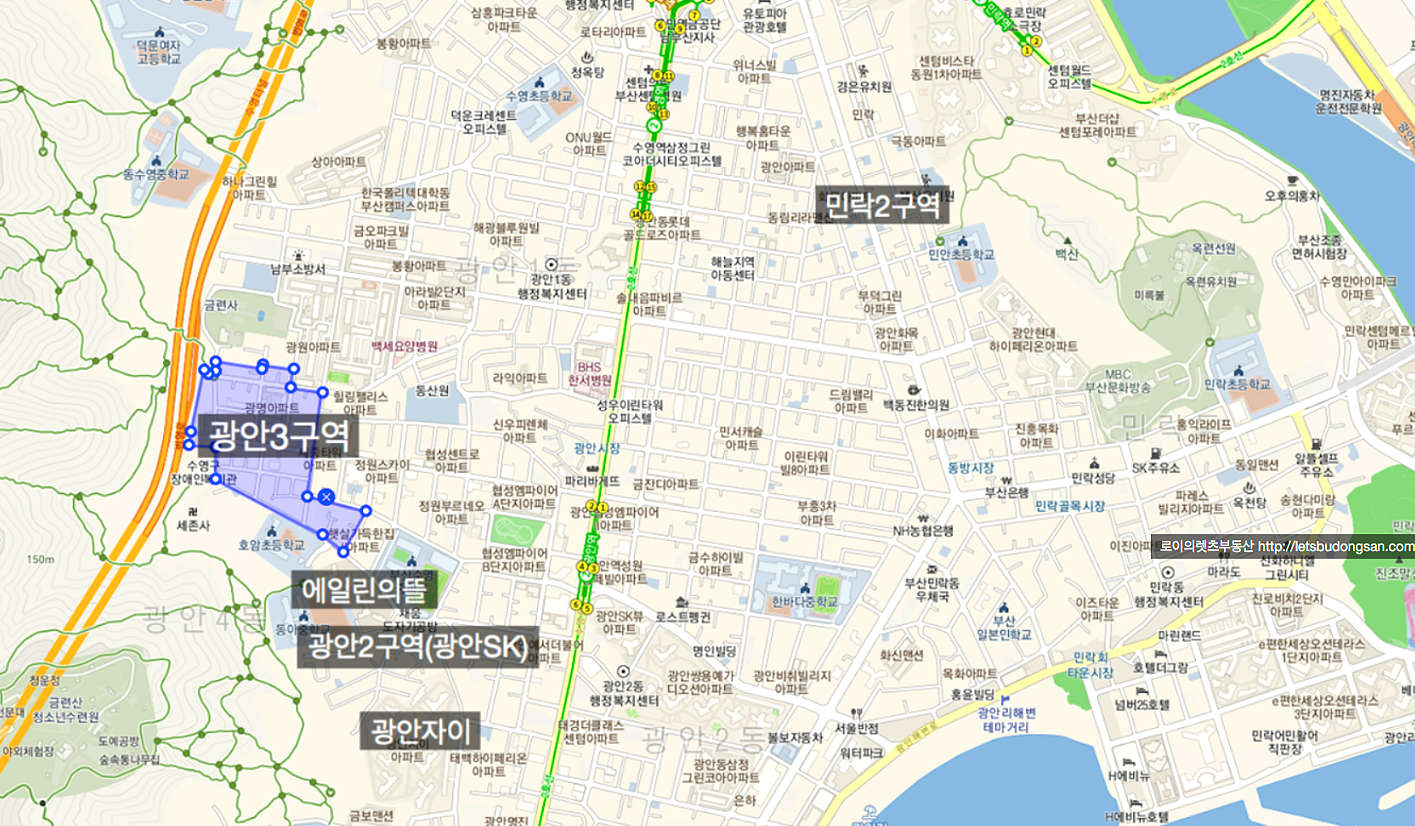 수영구 광안3구역 재개발 이 위치한 광안동의 주변 상황을 정리해 드리겠습니다.