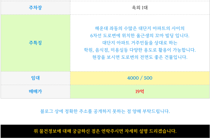 부산 해운대 대단지아파트앞 5층 상가 건물 ( 올근생 꼬마빌딩 ) 매매