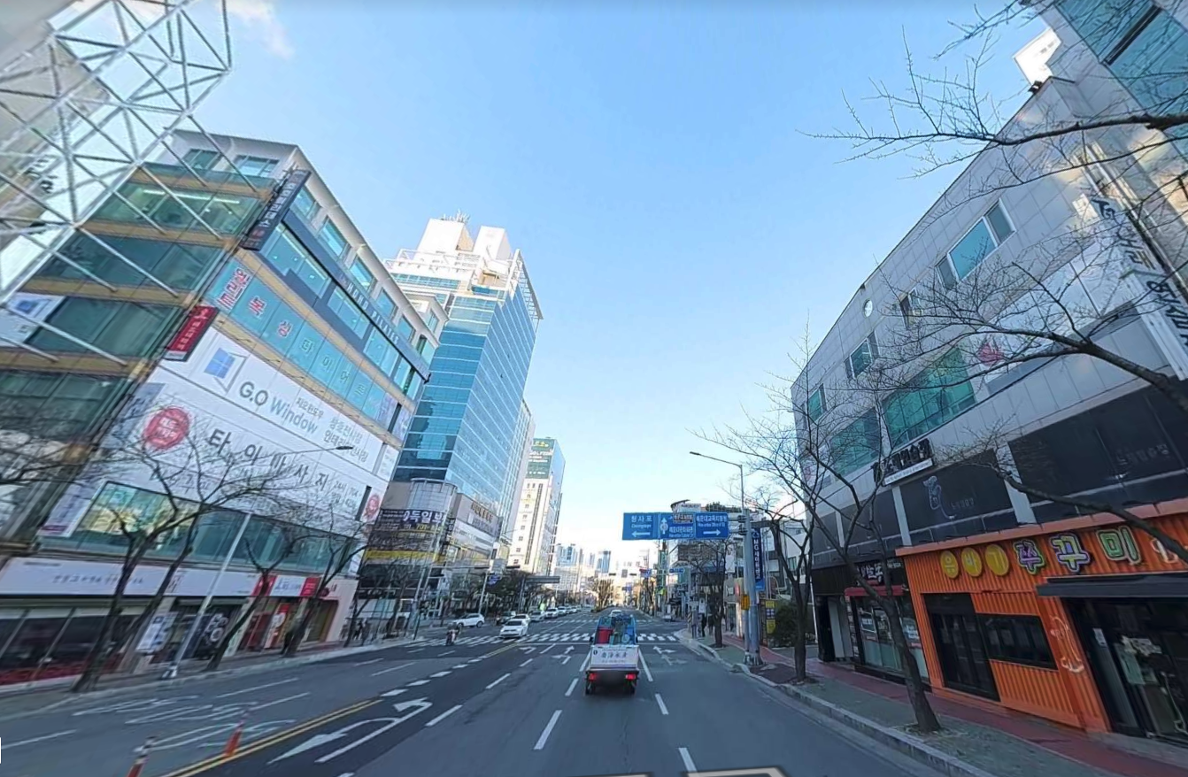 6차선 도로변에 위치한 5층 꼬마 빌딩으로