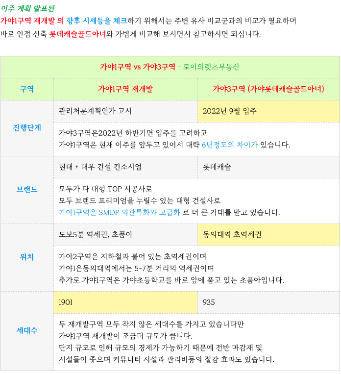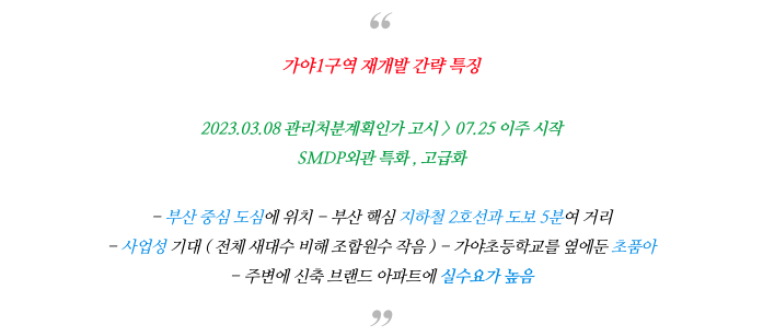 가야1구역 재개발 의 특징을 간략히 정리 해드립니다.