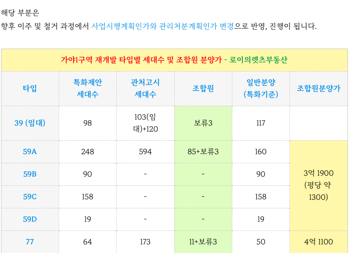가야1구역 재개발 ( 더 다이너스티 가야 ) 이주 계획과 84, 110, 84+59타입 매물을 소개해 드리겠습니다.