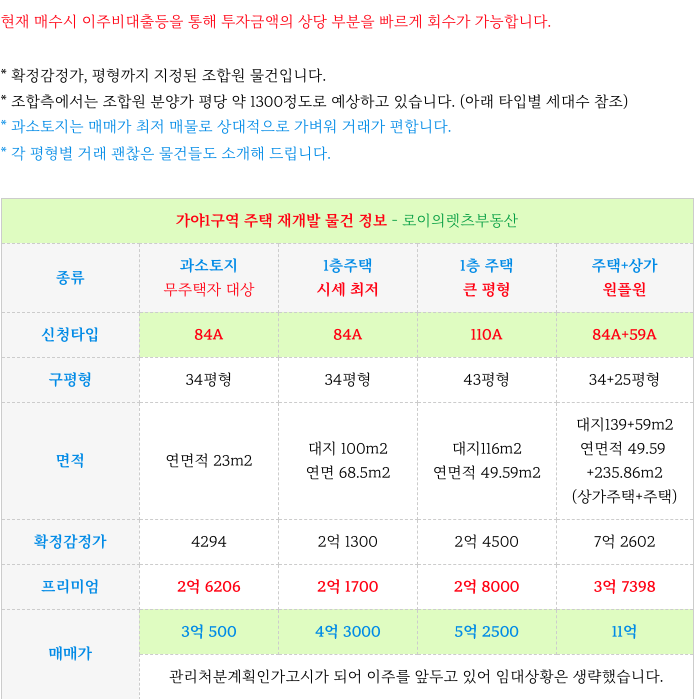 가야1구역 재개발 각 타입별 매물 소개 해 드리겠습니다.