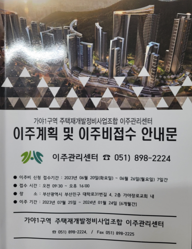 가야1구역 재개발 ( 더 다이너스티 가야 ) 이주 계획 & 매물