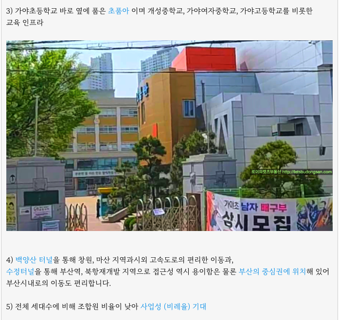 - 초품아, 주거편의성 좋은, 부산중심도심, 시내-시외 접근성좋은, 신축 아파트 수요 충분한