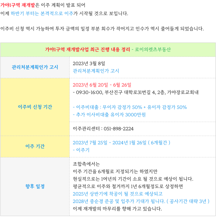 이주앞둔 가야1구역 재개발진행 일정 & 84, 110, 84+59 타입 매물
