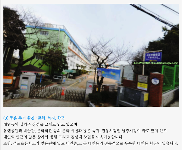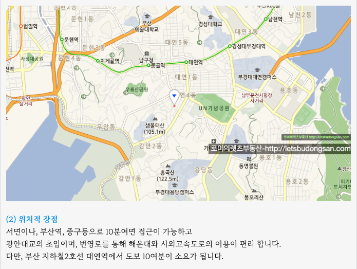 대연동이라는 실거주 환경이 좋은 곳에 위치하고 있으며