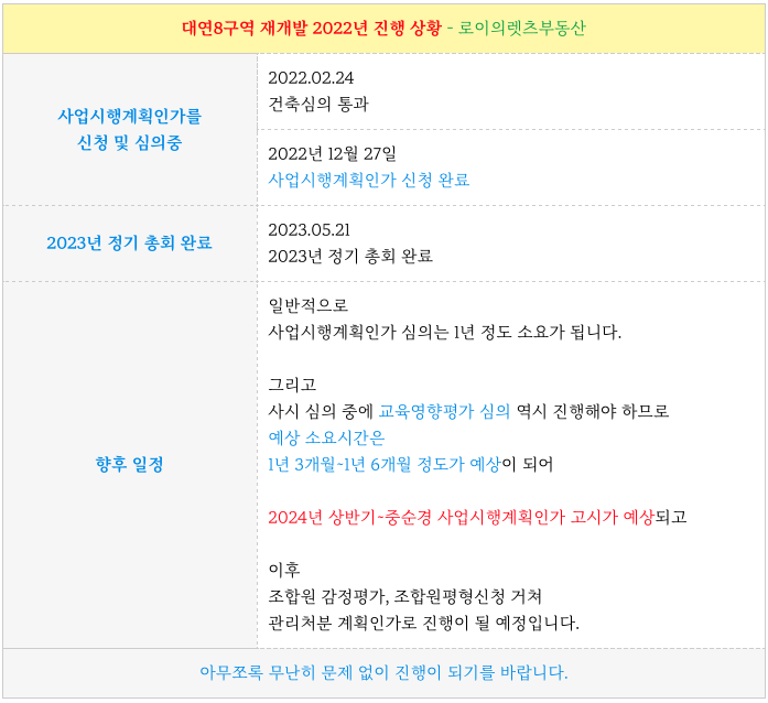 이후, 시공사가 최종 확정이 되면 사업시행계획인가 변경등이 진행될 예정입니다.