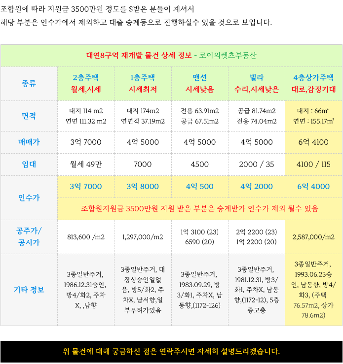 대연8구역 재개발 현 가능 물건들을 소개해 드리겠습니다.