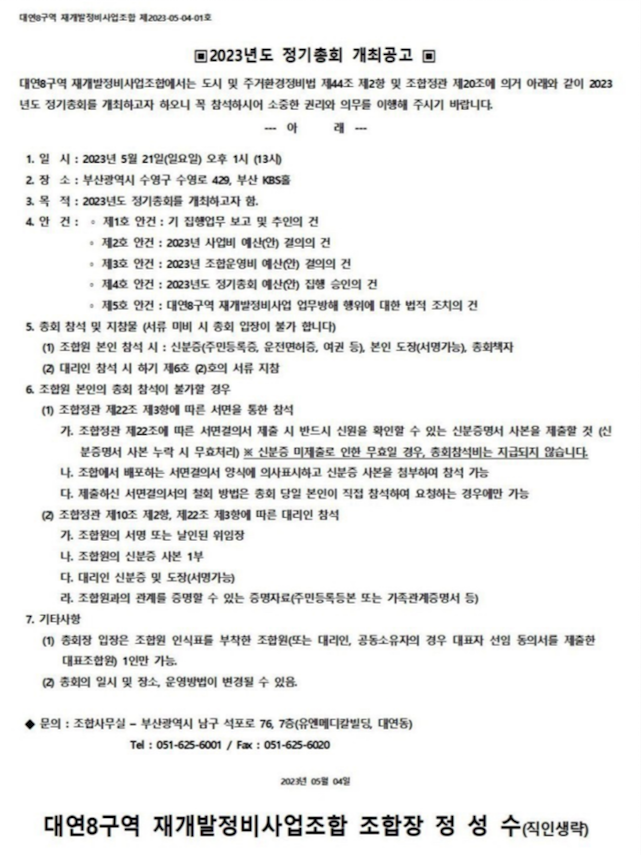 최근 진행 부분은 2023년 정기총회를 완료 하였습니다.