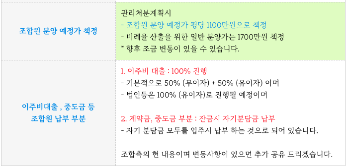 조합측에서 밝힌 조합원 예상 분양가가 평당 1100만원으로