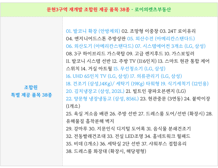 문현3구역 재개발의 조합원 특별 지급 품목 입니다.