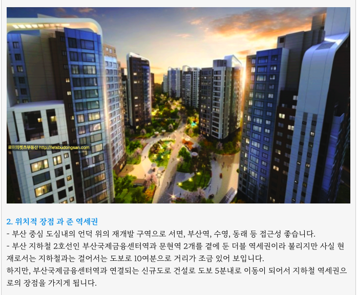 중심부와 상단은 부산 금융센터단지역에서 직선거리는 300여미터밖에 되지 않지만