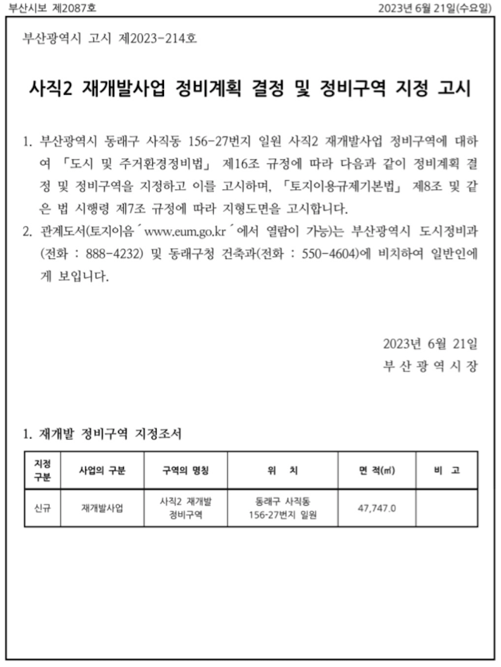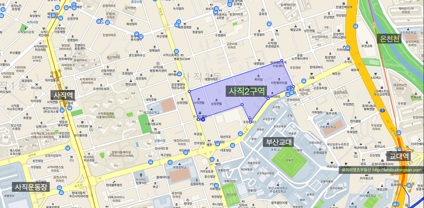구역 지정 고시 된 동래구 입지좋은 사직동 사직2구역 재개발 소식과 물건 정보를 드리도록 하겠습니다.