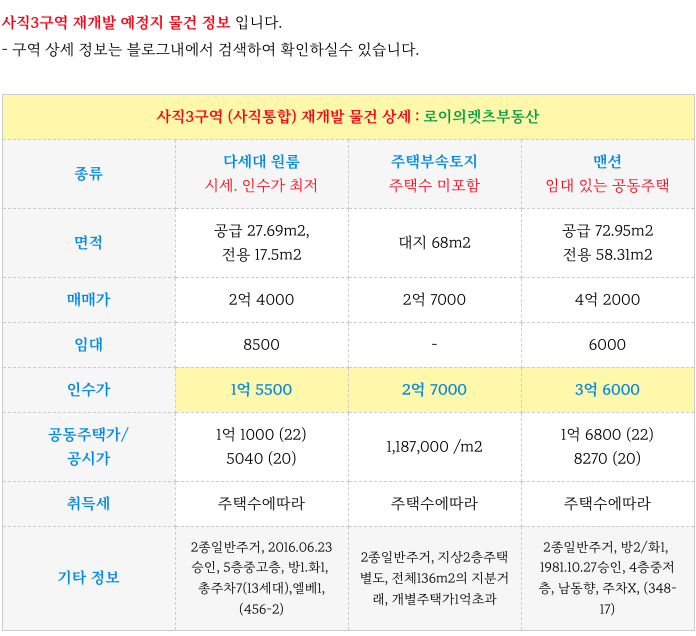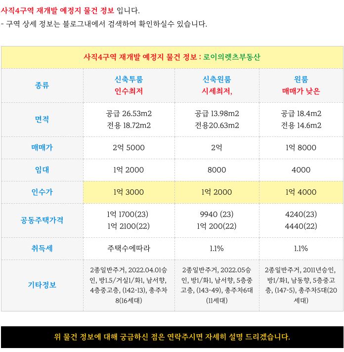 인접해 있는 사직3구역과 사직4구역 예정지 물건도 같이 소개해 드리겠습니다.