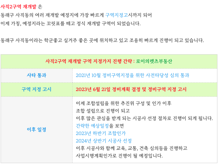 사직2구역 재개발의 진행상황 정리 및 추가 정보는 아래 페이지를 참고 부탁드립니다.