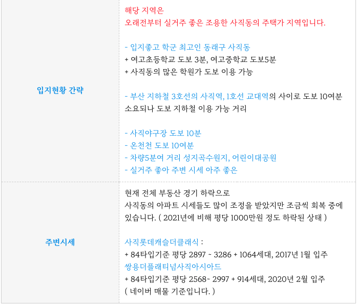 안녕하세요. 로이의렛츠부동산 ( 제이에이케이 부산 부동산중개법인 ) 입니다. 오늘은 입지좋은 사직동 사...
