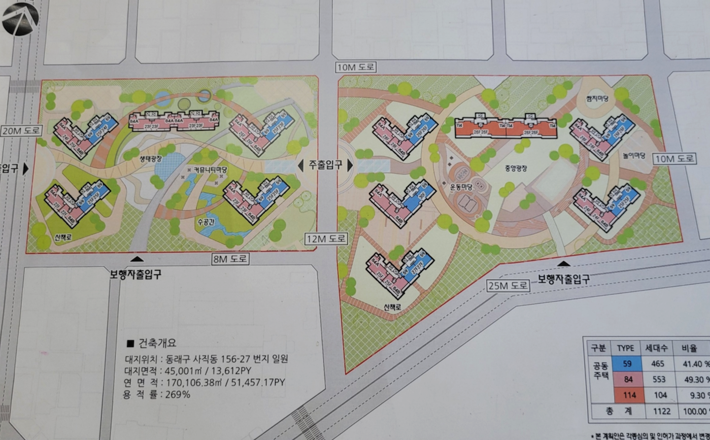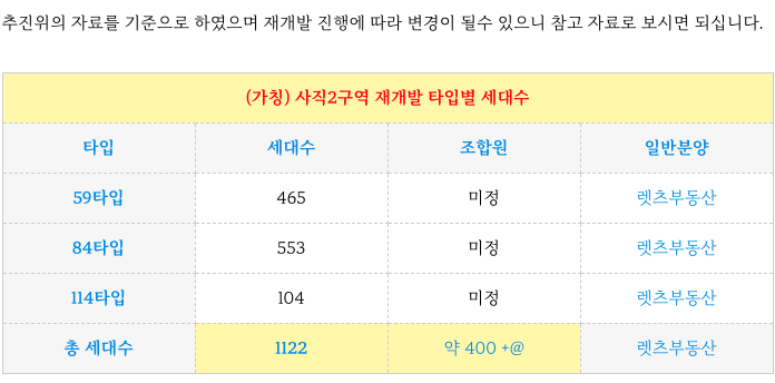 사직2구역 재개발 의 간략한 타입별 세대수 입니다.