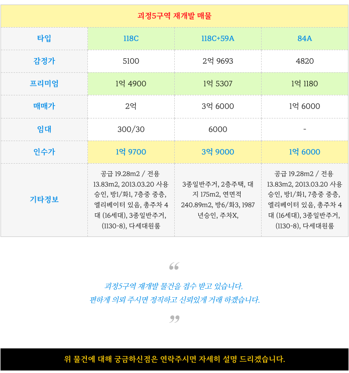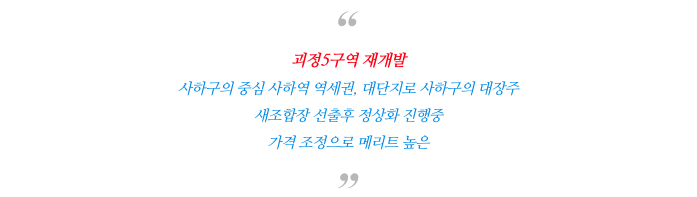 사하 대장주 괴정5구역 재개발 급 매물을 소개해 드리겠습니다.