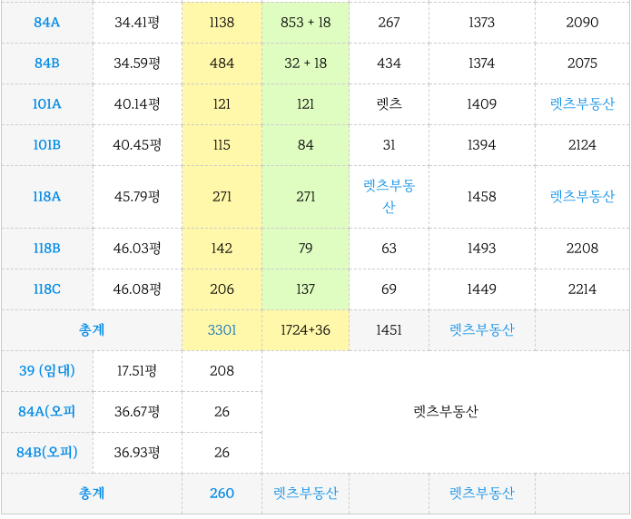 101타입 이상도 무려 855세대로 중형 평형 이상의 타입의 비율이 대단히 높습니다.
