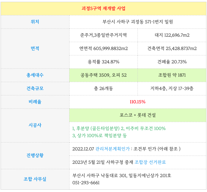 괴정5구역 재개발의 진행부분 체크 및 예상 일정 등 추가 정보는 아래 페이지를 참고 부탁드립니다.