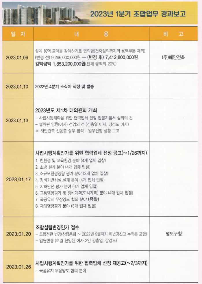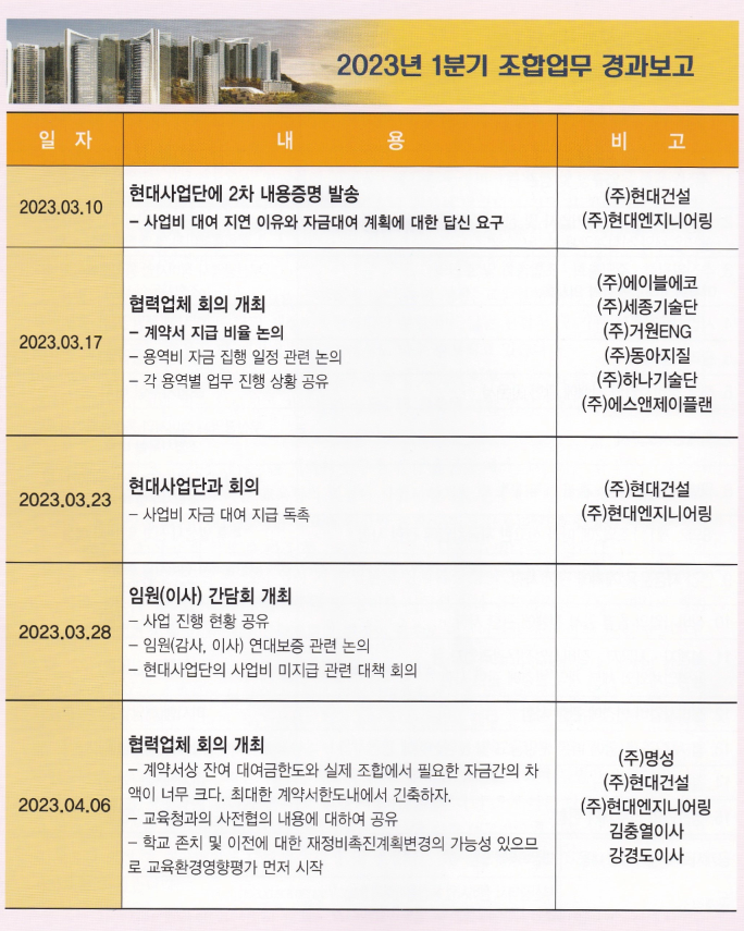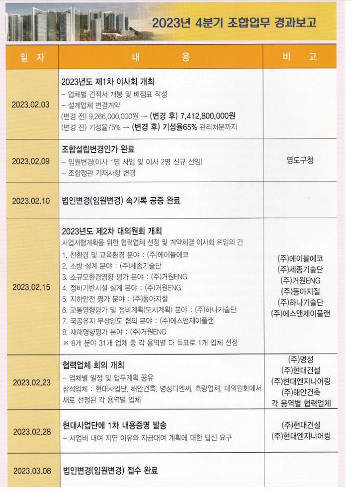 조합원 분들은 사시 신청등의 가시적인 업무 진행 결과가 없이 건축심의 이후 1년여의 시간이 흘러
