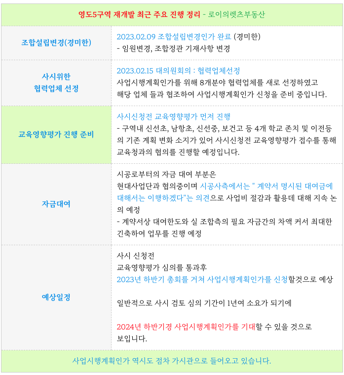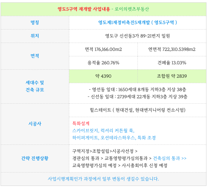 영도5구역 재개발의 진행상황과 향후 예상일정등 추가 정보는 아래 페이지를 참고 부탁드립니다.