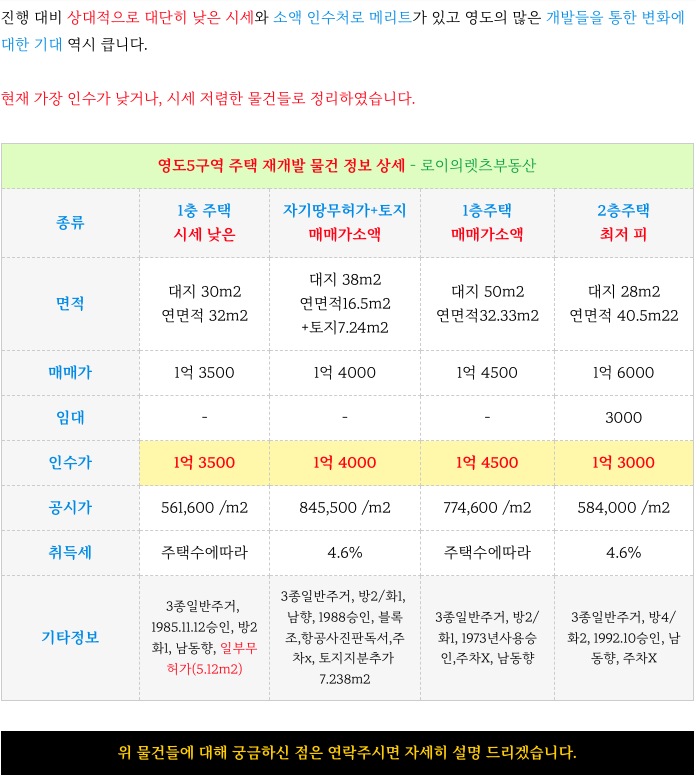 영도5구역 재개발 최저 인수가 매물들 소개 해드리겠습니다.