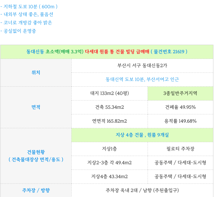 동대신동 초소액(매매 3.3억) 다세대 원룸 통 건물 빌딩 매매 물건 정보 정리 드립니다.