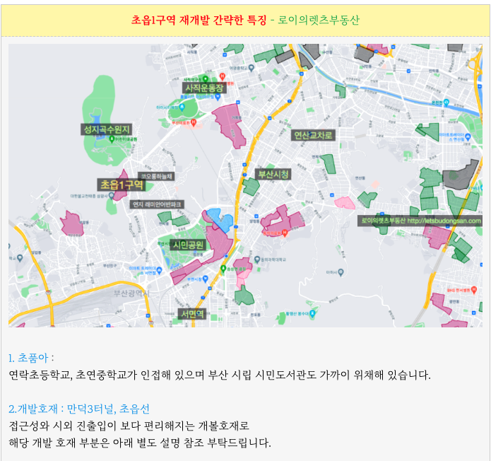 초읍1구역 재개발의 개발 호재를 간략히 정리하였습니다.
