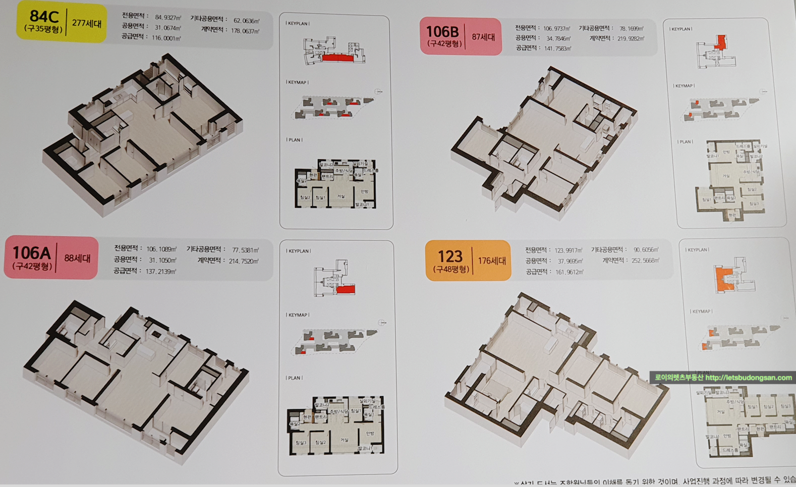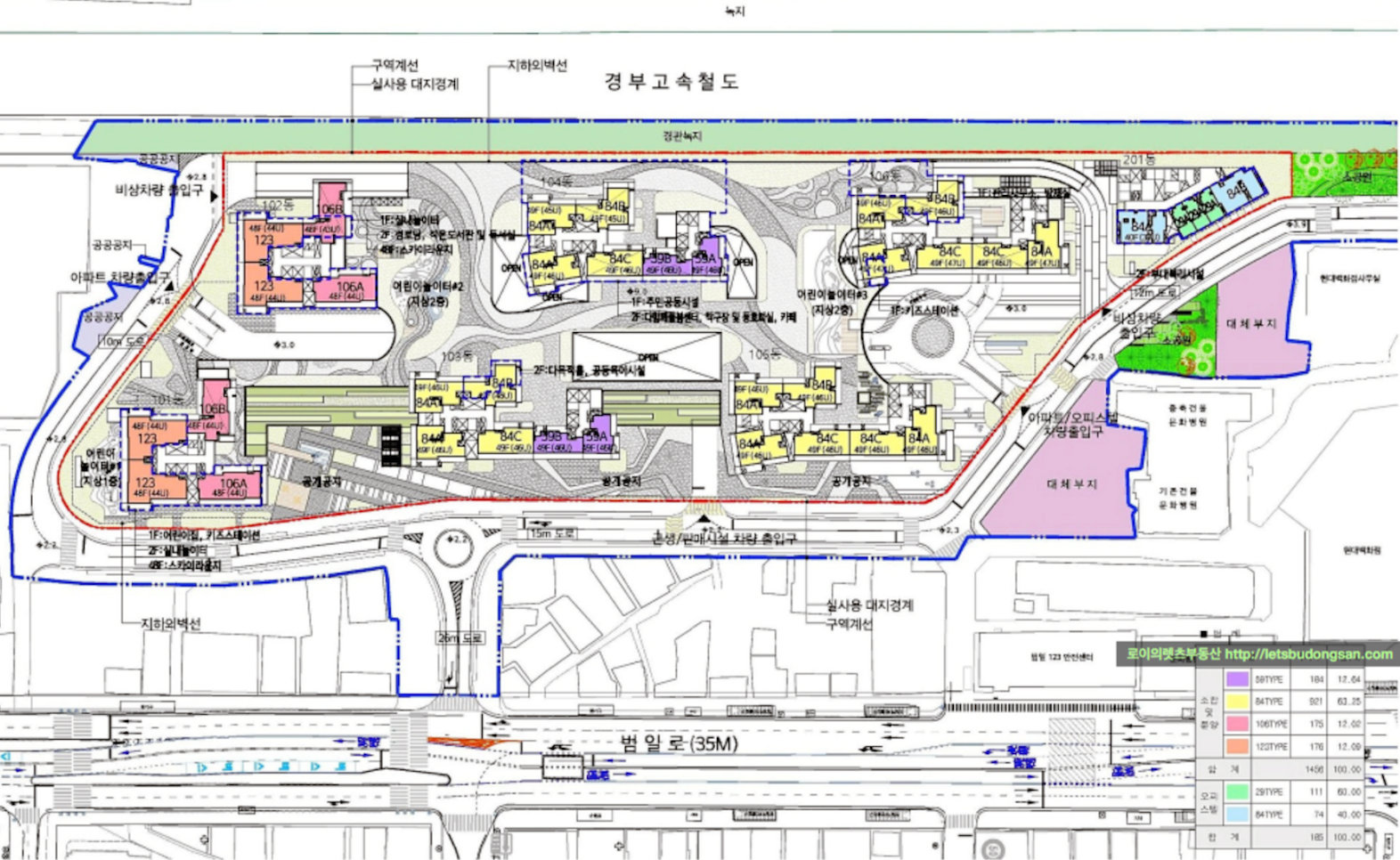 106타입 이상이 351세대로 24% 가 되어 중대형 평형의 구성이 대단히 높습니다.