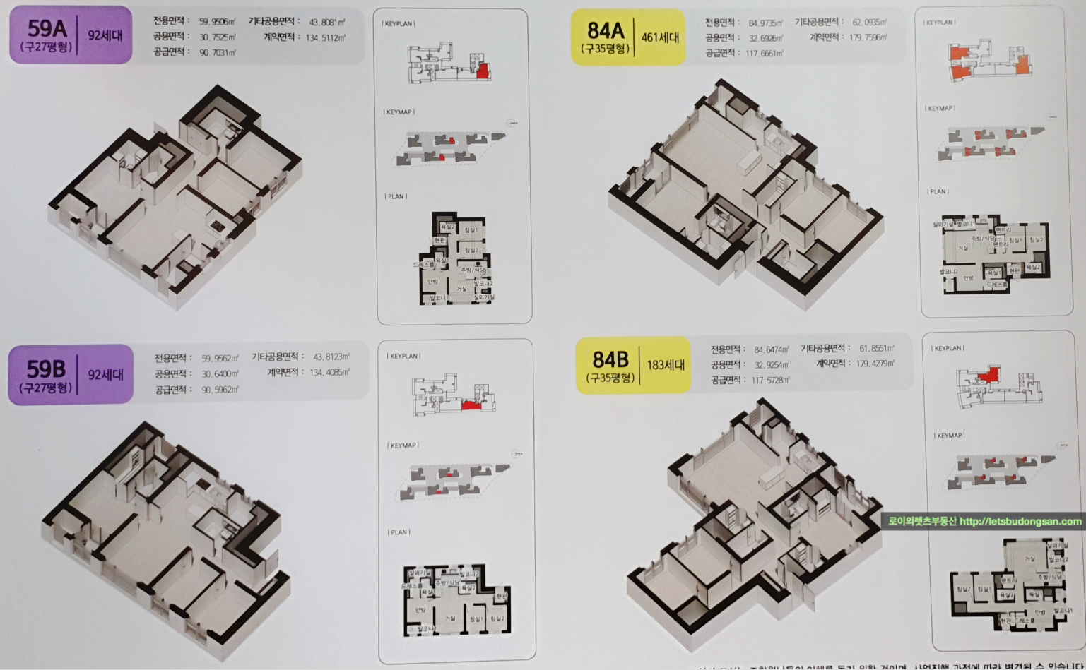 전체 타입에서 84타입이 921세대로 63%가 넘으며 84타입 이상은 1272세대로 87%가 넘고