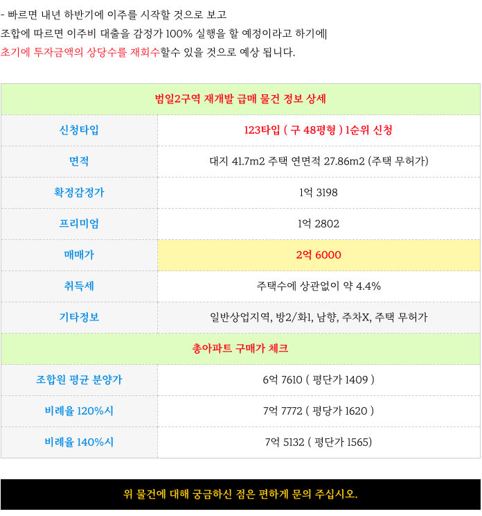 범일2구역 재개발 123타입(구 48평) 소액 급매물