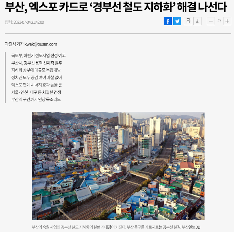 경부선 철로 구역 옆에 있다는 것이지만 부산 경부선 철도 지하화 역시 계획되어 있어