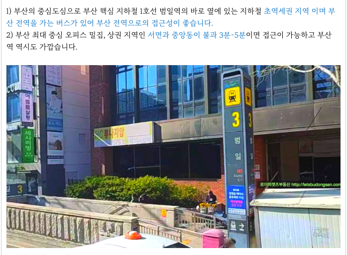 - 중심도심 초역세권, 부산 전역 접근성, 평지, 조망 기대, 경부선철도지하화 기대